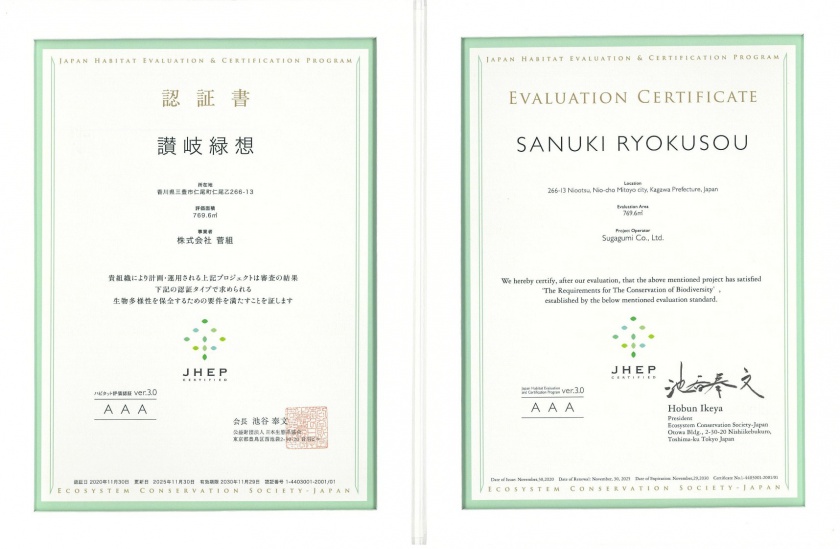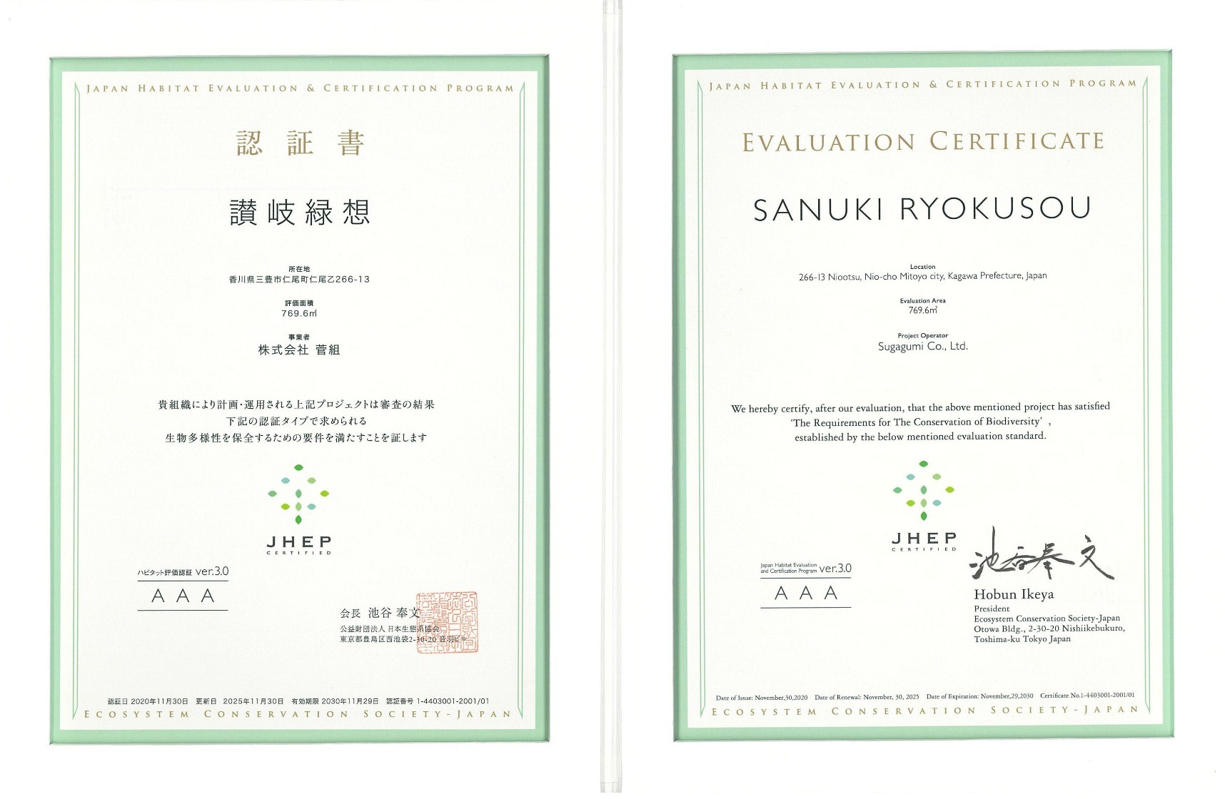 讃岐緑想のJHEP認証 AAA(2020年取得・2025年更新)