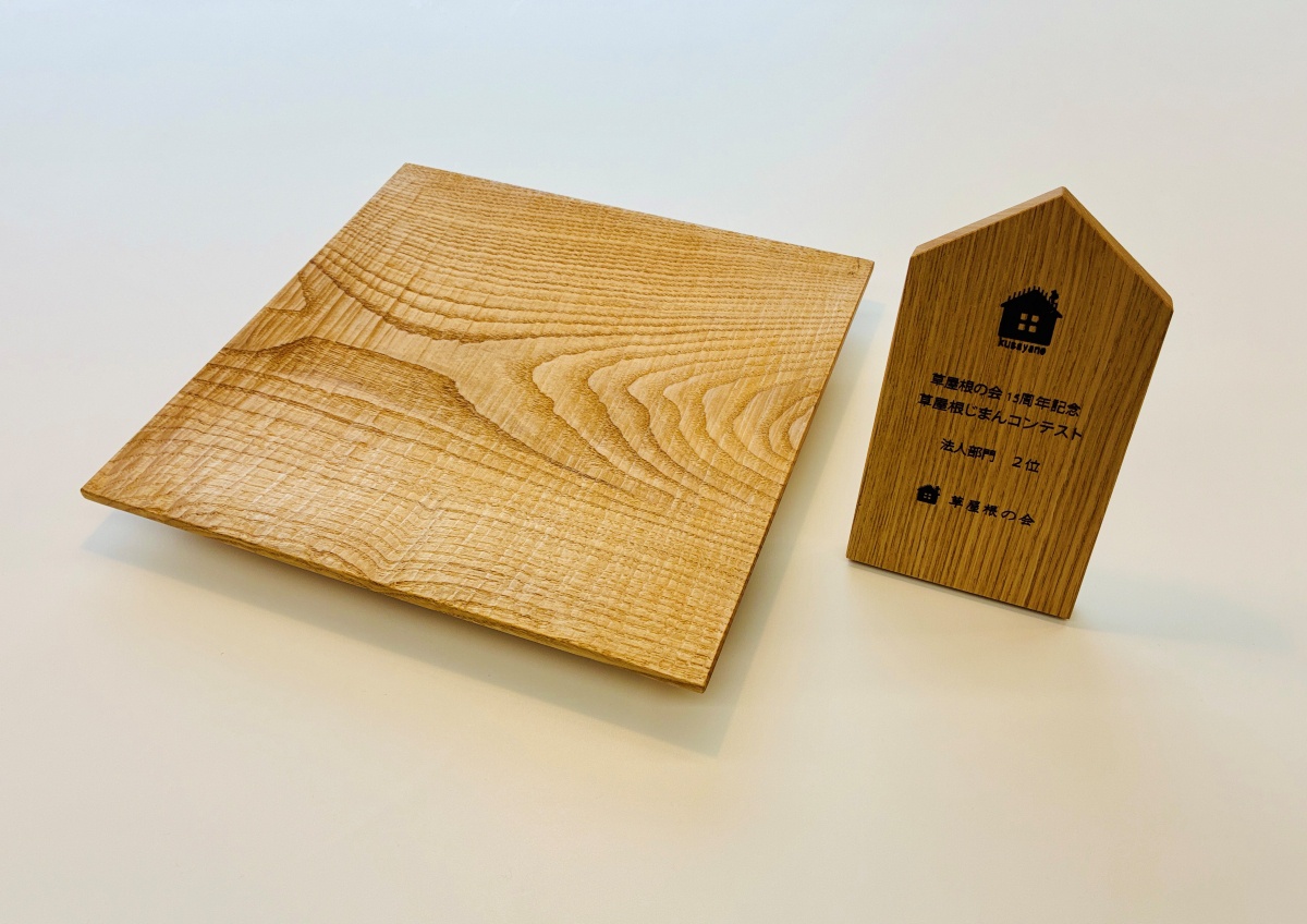 木の盾と木目の美しいプレートをいただきました