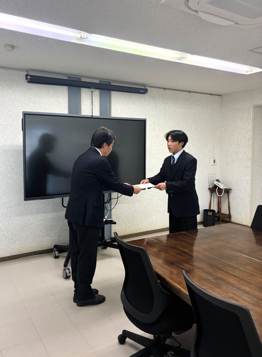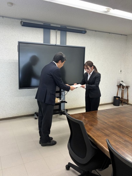 2026年度入社 新卒採用の内定式を執り行いました 2025年12月05日 | 社内行事 < 会社 | #菅組 #新卒採用 #内定式 #2026新卒 #総合建設業 #地域ゼネコン #三豊市 #菅組の日常 2026年度入社予定の新卒内定者2名を迎え、社内にて内定式を執り行いました。 社長の挨拶に続き、内定通知書の授与を実施。お二人は緊張の中にも明るい笑顔をのぞかせ、 まっすぐな視線で内定書を受け取っておられました。 来年度から一緒に働けることを、社員一同とても楽しみにしております。 facebook twitter line
