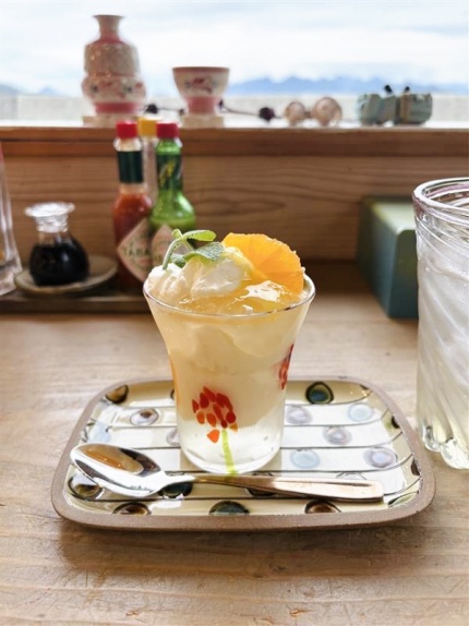 ボランティアの休憩時間に「あわろは食堂」さんで、みかんのパンナコッタをいただきました。