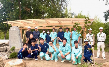 多度津高校建築科の学生と建てる、舟岡山古塔の屋根「悠久」